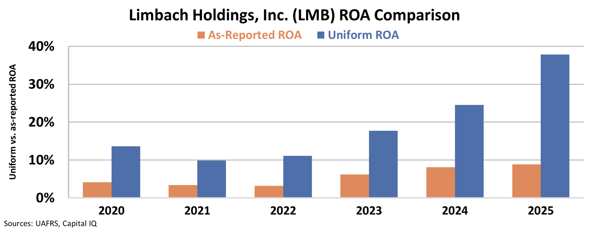 Limbach’s Uniform ROA has climbed steeply from 14% in 2020 to 38% in 2025.