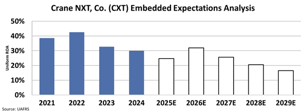 At current prices, investors are expecting Crane NXT’s Uniform ROA to drop to 16% by 2029, a significant drop from the 30% Uniform ROA it delivered last year.