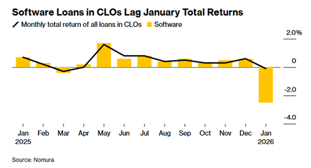 While software loans largely matched overall loan returns in all of 2025, they lost 2.5% in January alone while the rest of the market was roughly flat.