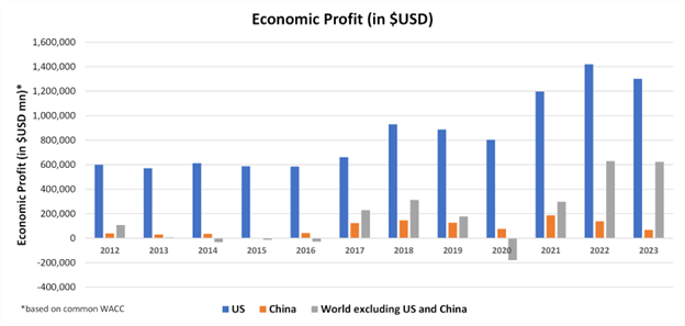 As seen in the chart below, U.S. economic profit was almost double the rest of the world in 2023. It was almost 20 times higher than China’s.