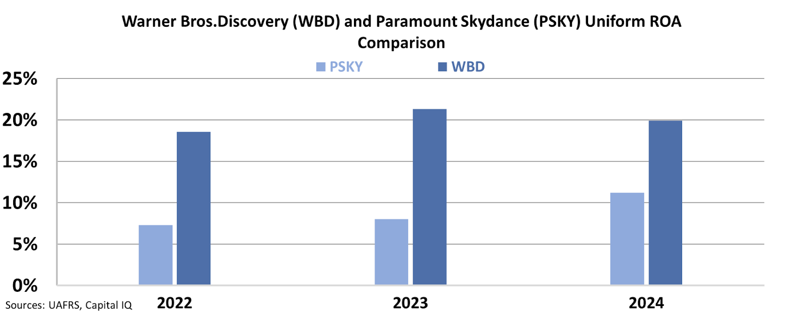 In the past three years, Warner Bros. has been a more profitable business, delivering an average Uniform return on assets (“ROA”) of nearly 20%. Meanwhile, Paramount has lagged behind, delivering an average return of 8% during the same period.